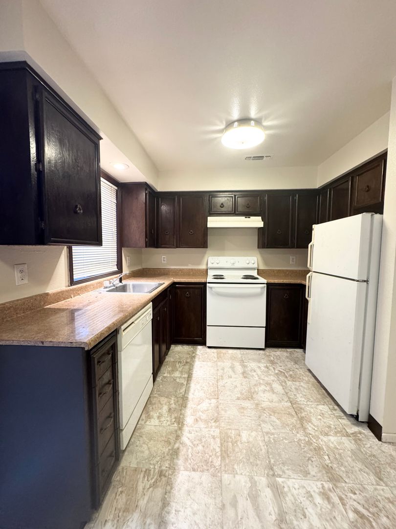 Welcome to the Enterprise Area- Two Bedroom Townhouse with Garage. Each townhome comes with a one-car garage, central heat & air, and a private fenced patio. The unit features all-new blinds and new fresh carpet to make you feel right at home. The downstairs boasts a half bath and the private fenced backyard is perfect for outdoor entertainment. Upstairs, you will find two spacious bedrooms and a full bathroom, perfect for busy mornings. The property also features a lovely dining area, kitchen equipped with a refrigerator, stove/oven, and dishwasher, making meal preparation a breeze. For your convenience, an on-site coin laundry facility is available for use. This apartment is perfect for those in need of a comfortable and affordable living space.