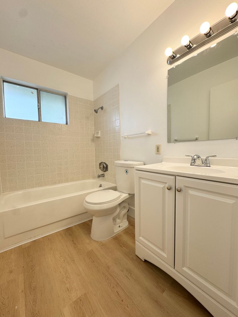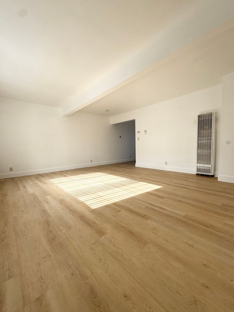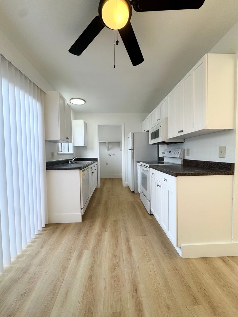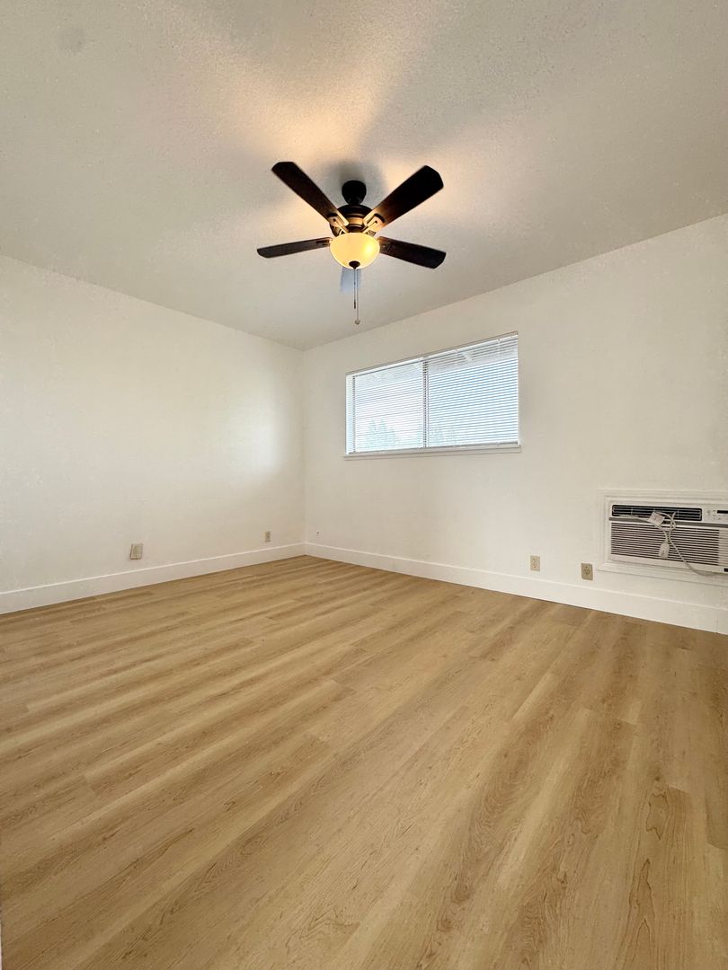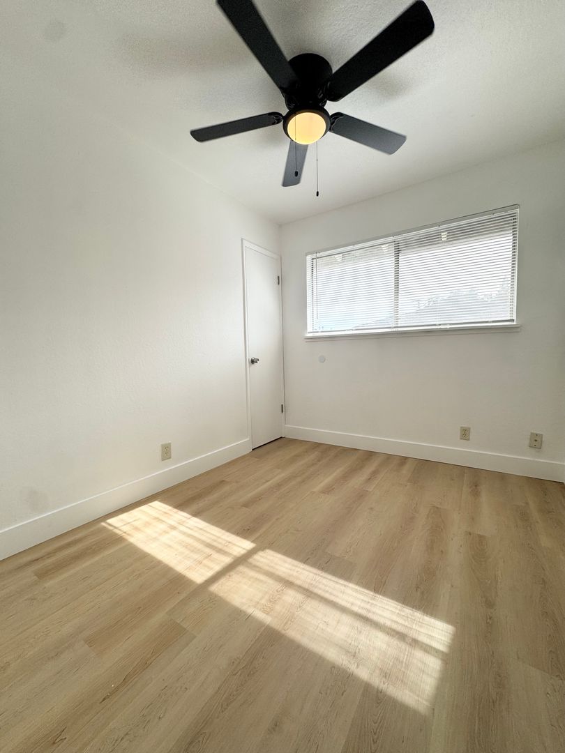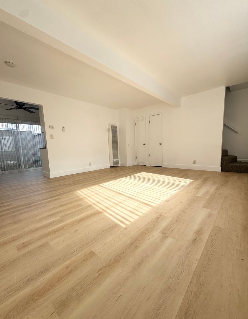 Welcome to the Remodeled Garden Tract Townhomes, located near shopping, transportation, dining and nightlife. This stunning townhouse offers three spacious bedrooms, complete with ceiling fans for your comfort, and 1.5 newly updated bathrooms featuring a new vanity. The home has been freshly painted throughout, enhancing the bright and airy feel. The kitchen is a chef's dream, boasting new cabinets, countertops, and is fully equipped for all your culinary needs. The dining room is accentuated with a stylish ceiling fan. The new LVP flooring throughout the home adds a touch of elegance and is easy to maintain. The townhouse also offers the convenience of washer and dryer hookups. Enjoy the outdoors in your private patio, a perfect spot for relaxation. The property comes with off-street parking, providing an added layer of convenience. With wall heating and A/C units, you can ensure your home is always at the perfect temperature. The property is available for a 1-year lease. Experience the perfect blend of comfort and style at the Remodeled Garden Tract Townhomes.