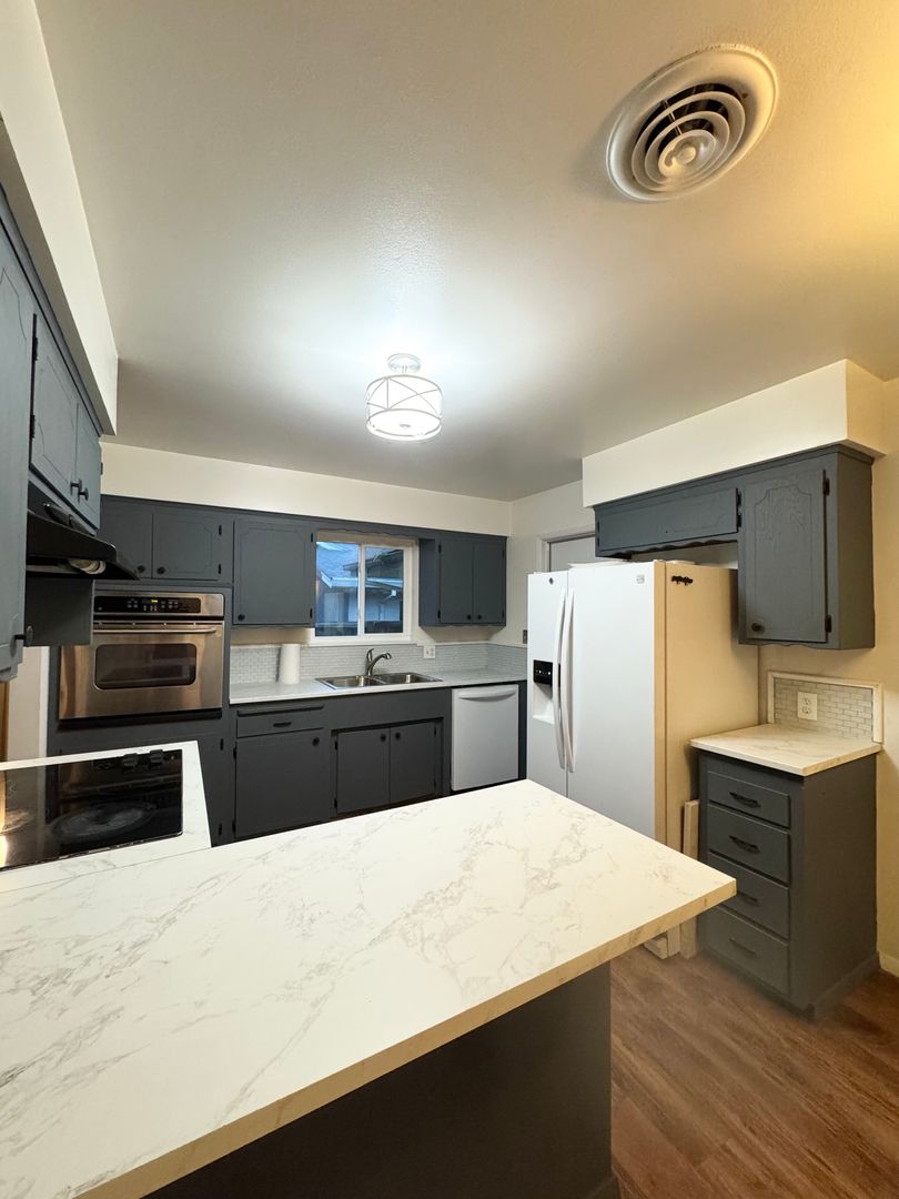 FULL OF CHARM AND CHARACTER. Cozy & Spacious living room with wood fireplace. Newly renovated kitchen with fridge, oven, dishwasher, garbage disposal & cooktop. New light fixtures throughout. Newly updated bathrooms. Master suite with walk in shower. Covered back patio and spacious fenced backyard. Plenty of storage in the house and in the 2 Car Garage.