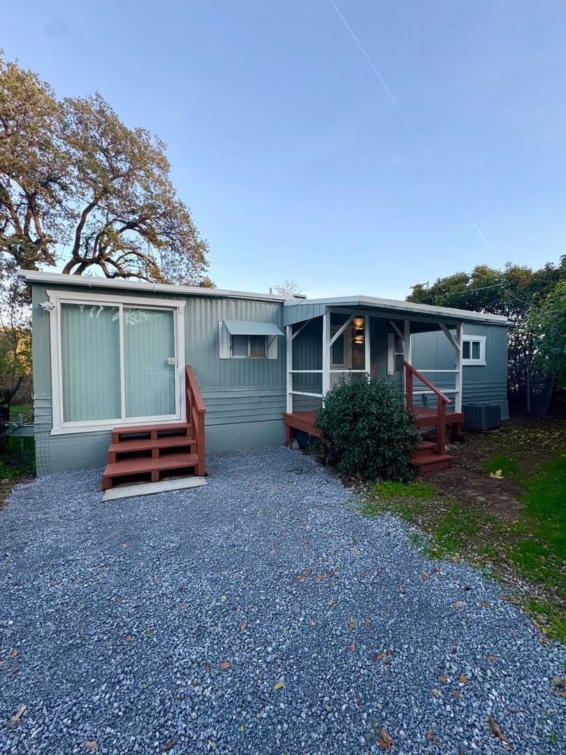 Welcome to this beautifully renovated manufactured home. This property boasts three spacious bedrooms, including a master bedroom, and 1.5 updated bathrooms. The home has been freshly painted throughout and features new carpeting in living room, bedrooms & hallway while LVP flooring is in the bathrooms, kitchen and dining area. All-new blinds, creating a modern and inviting atmosphere. The kitchen is a cook's dream with new cabinets, butcher block countertops, and ample storage space. Both bathrooms have been updated with new vanities, adding a touch of elegance. The home also includes a washer hookup and a dryer (not under warranty), adding convenience to your daily routine. Step outside to a fenced backyard, perfect for outdoor activities, and a storage shed for all your extra belongings. The oversized two-car garage provides plenty of space for vehicles or additional storage. Relax on the covered porch and enjoy a cup of coffee in the morning. Don't miss out on this gem!