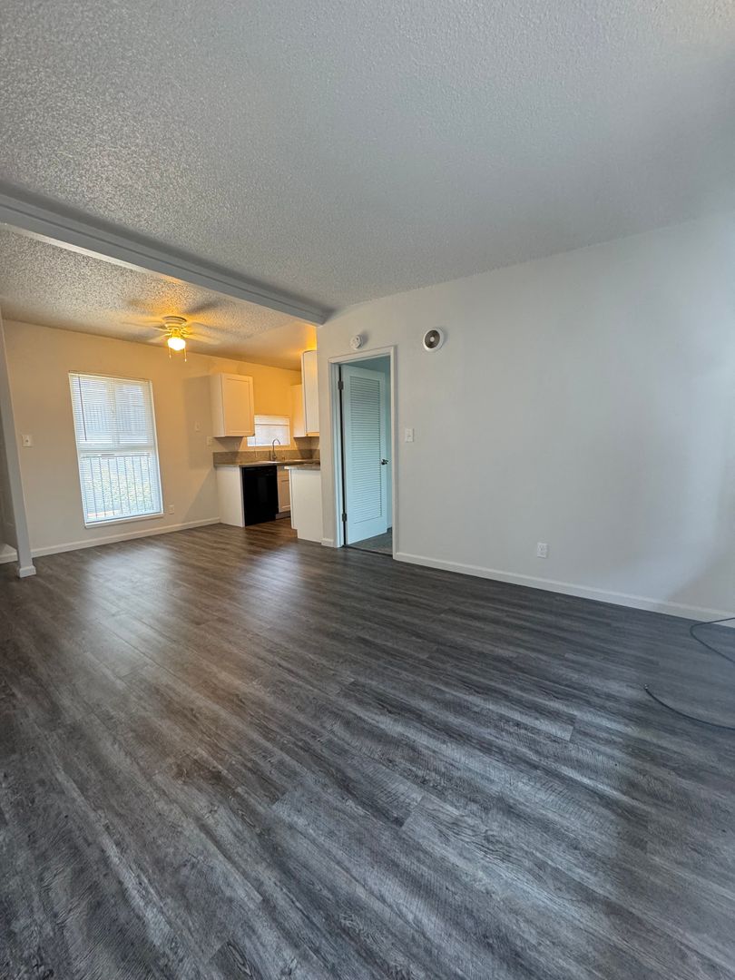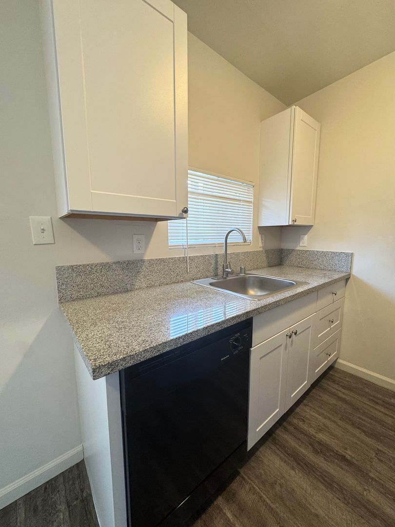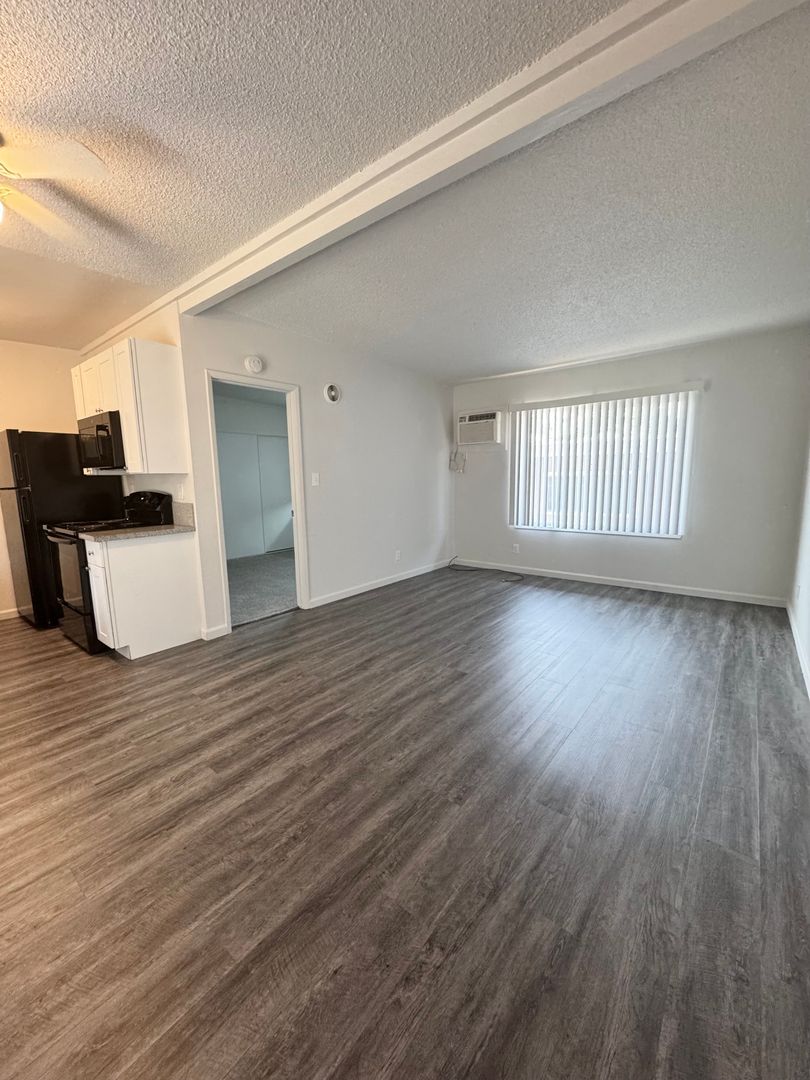 This fully remodeled 1 bed 1 bath apartment is equipped with LVP flooring throughout and carpet in the bedroom. Kitchen features black appliances including a built-in microwave, dishwasher, refrigerator, electric range and granite counter-tops. Bathroom features a beautiful vanity, modern lighting and tiled shower enclosure. A wall a/c heater combo unit and a ceiling fan in dinette. The complex has a community pool, on-site management and onsite coin-op laundry. Quick access to shopping, restaurants, hospital, parks & public transportation.