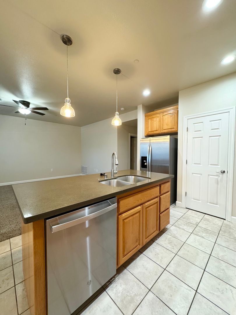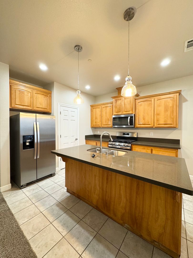 Welcome to Dana Pointe Townhomes. These spacious 3-bedroom, 2.5-bathroom townhouses are nestled in a location that includes both local conveniences plus on site features to make you feel at home. The open floor plan features a modern spacious kitchen with a refrigerator, dishwasher, microwave, gas stove/oven, and a convenient kitchen island overlooking a cozy living room, perfect for entertaining guests and a 1/2 bathroom downstairs. The master suite boasts his & her sinks, a walk-in shower, and a walk-in closet for ample storage. Enjoy the convenience of a laundry room, 2-car garage, and central heat & air. Step outside onto the private patio to take in the beautiful views. With tile floors, carpeted bedrooms, linen storage closets, and 2 built-in desks, this townhouse has everything you need for comfortable living. Don't miss out on this fantastic opportunity to make Dana Pointe your new home!